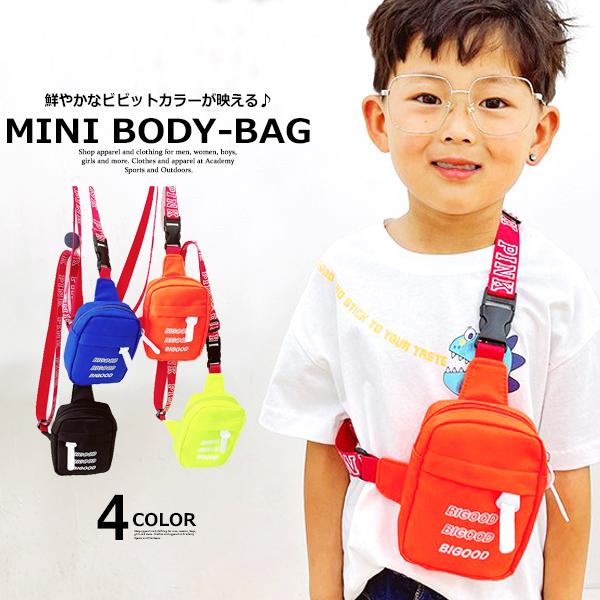 子供服 キッズ 鞄 ビビットカラー ミニボディバッグ 肩掛け 斜め提げ スポーツ アウトドア 通園 通学 習い事 遠足 旅行 男の子 女の子 男児 女児 ジュニア